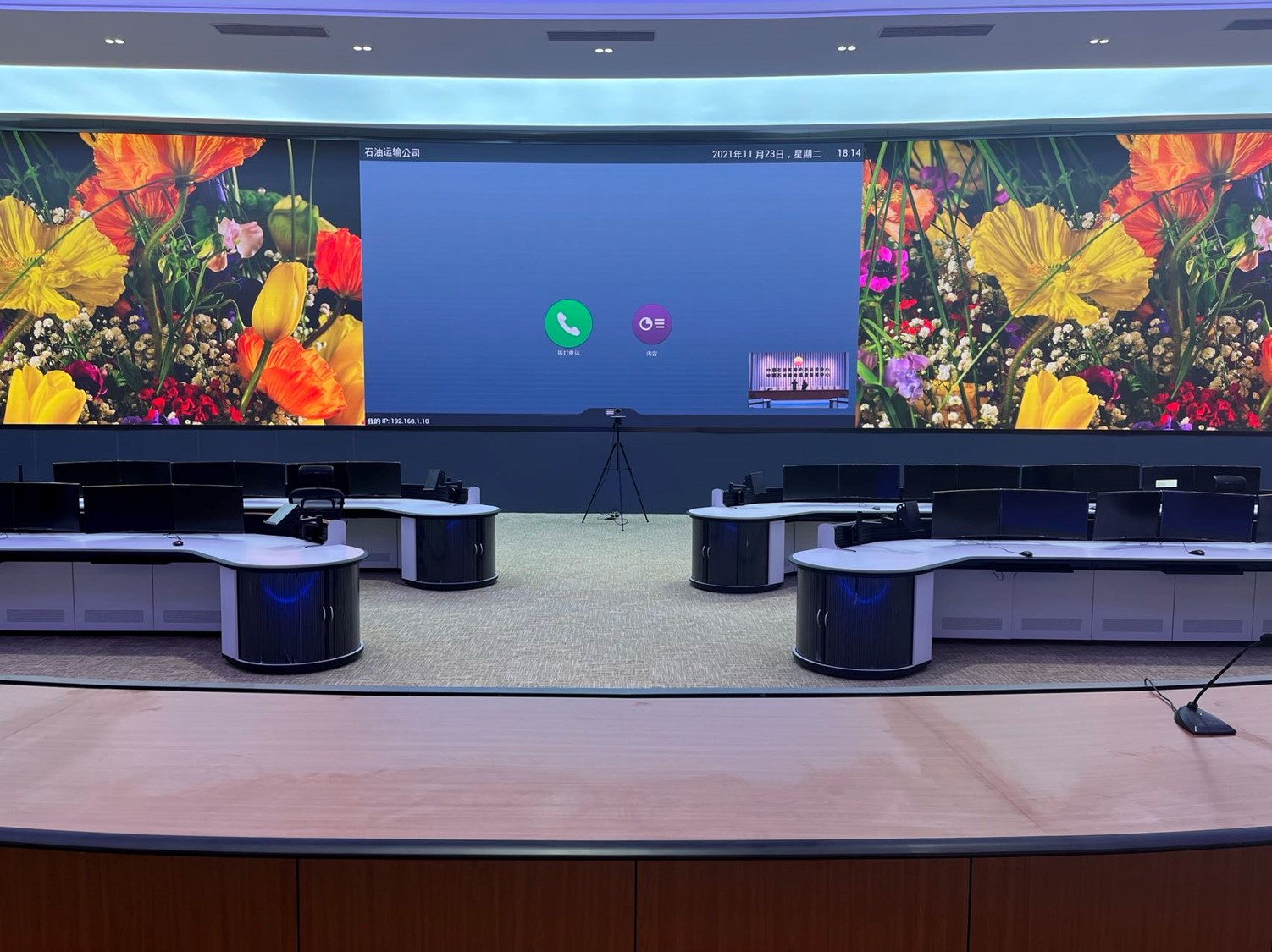 中國石油集團安全環(huán)保技術(shù)研究院1層視頻會議室創(chuàng)新型的運用0.93mmLED顯示屏,不僅滿足單位召開視頻會議室使用,同時可用于超高分圖像的展示工具,對研究院研發(fā)團隊成果展示、實驗過程分析提供保障。同時對現(xiàn)有視頻會議功能進行升級,由原來模擬、標(biāo)清視頻會議形式升級為高清、4K會議,